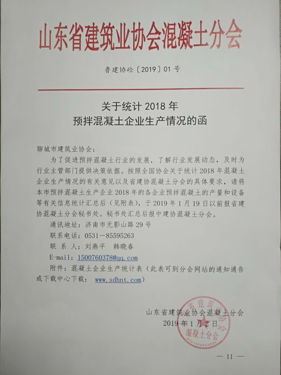 請各混凝土企業(yè)于2019年1月16日前將生產(chǎn)統(tǒng)計表發(fā)送至聊城市建筑業(yè)協(xié)會郵箱。郵箱地址:lcsjzyxh@qq.com聯(lián)系電話:8310706通知公告