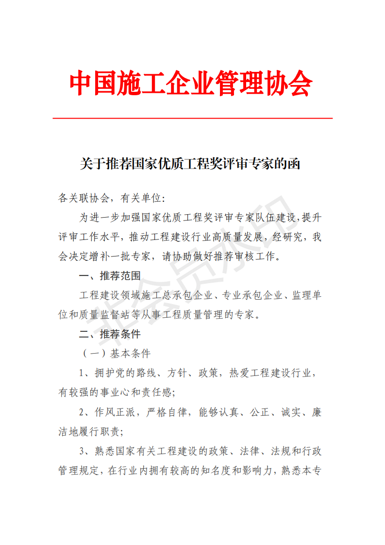 轉(zhuǎn)發(fā)《關(guān)于推薦國家優(yōu)質(zhì)工程獎評審專家的函》的通知