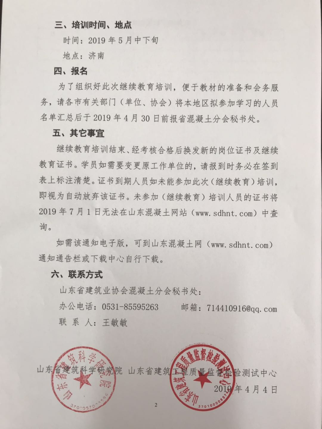關(guān)于舉辦“山東省預(yù)拌混凝土企業(yè)試驗室檢測及 質(zhì)量控制技術(shù)人員換發(fā)崗位證書” (繼續(xù)教育)培訓(xùn)的預(yù)備通知