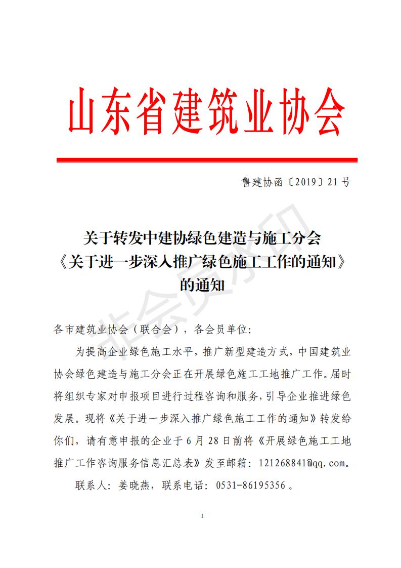 關于轉發(fā)中建協(xié)綠色建造與施工分會 《關于進一步深入推廣綠色施工工作的通知》的通知