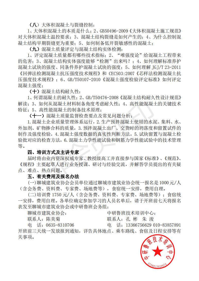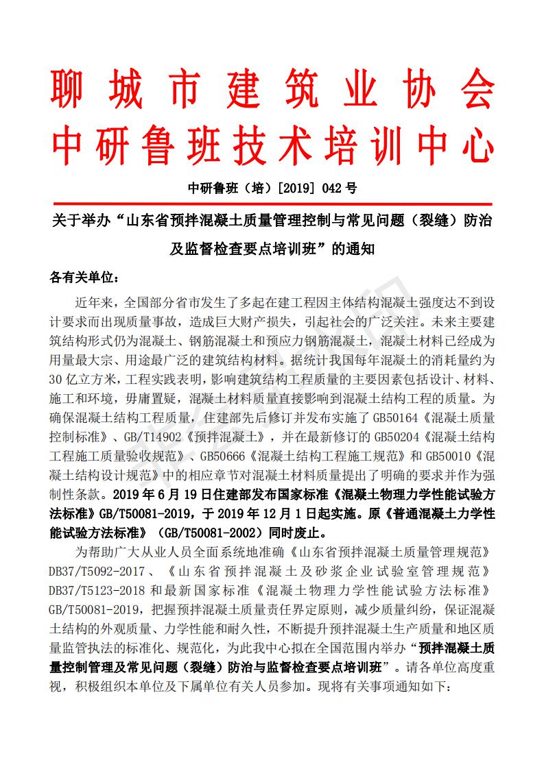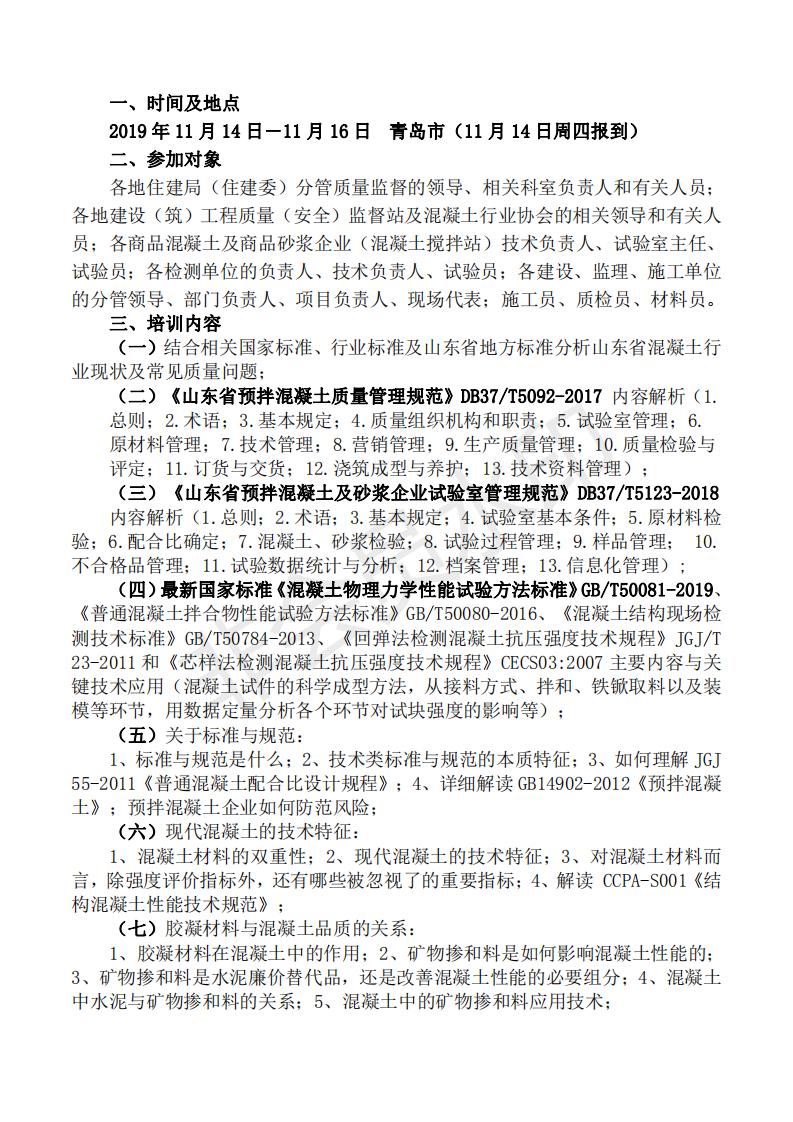 關(guān)于舉辦“山東省預(yù)拌混凝土質(zhì)量管理控制與常見(jiàn)問(wèn)題(裂縫)防治 及監(jiān)督檢查要點(diǎn)培訓(xùn)班”的通知