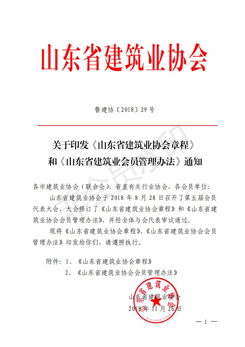 關于印發(fā)《山東省建筑業(yè)協(xié)會章程》 和《山東省建筑業(yè)會員管理辦法》通知